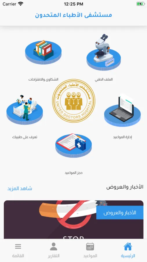 تطبيق مستشفى الأطباء المتحدون ( UDH Smart ) يوفر حزمة واسعة من الخدمات المختلفة مثل حجز المواعيد لدى العيادات والأطباء ، الاطلاع على التحاليل وتقارير الأشعة وإدارة المواعيد.