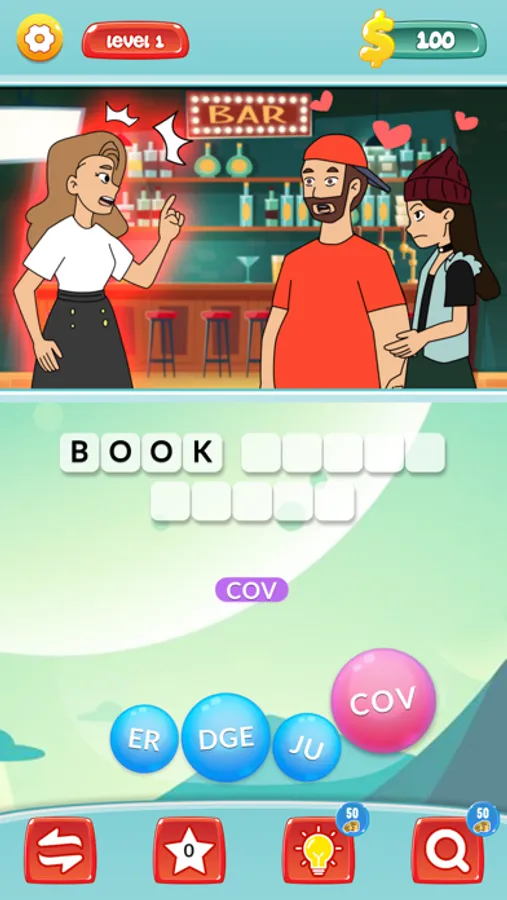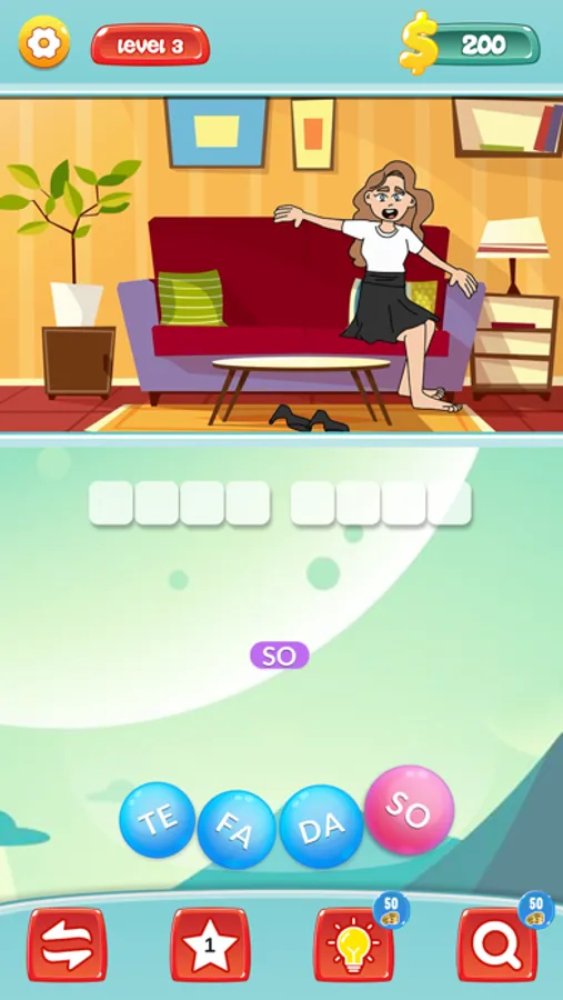 Each level has a picture-based word puzzle that you need to solve. Just type the answer to complete each level.