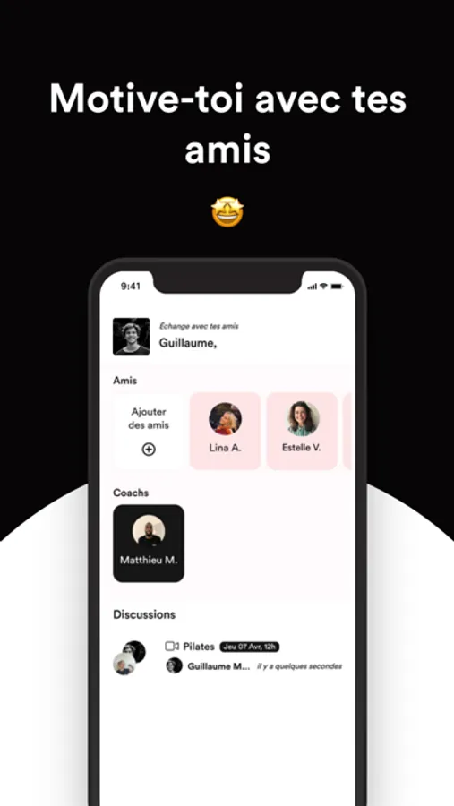 Discutez en direct avec vos coachs et vos amis, sélectionnez les cours qui vous donnent envie, mettez à jour votre Rubrique “Santé“, répondez aux tests, et pleins d’autres fonctionnalités pour améliorer au maximum vos performances physiques !