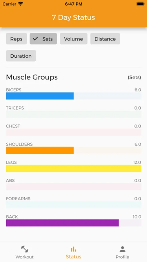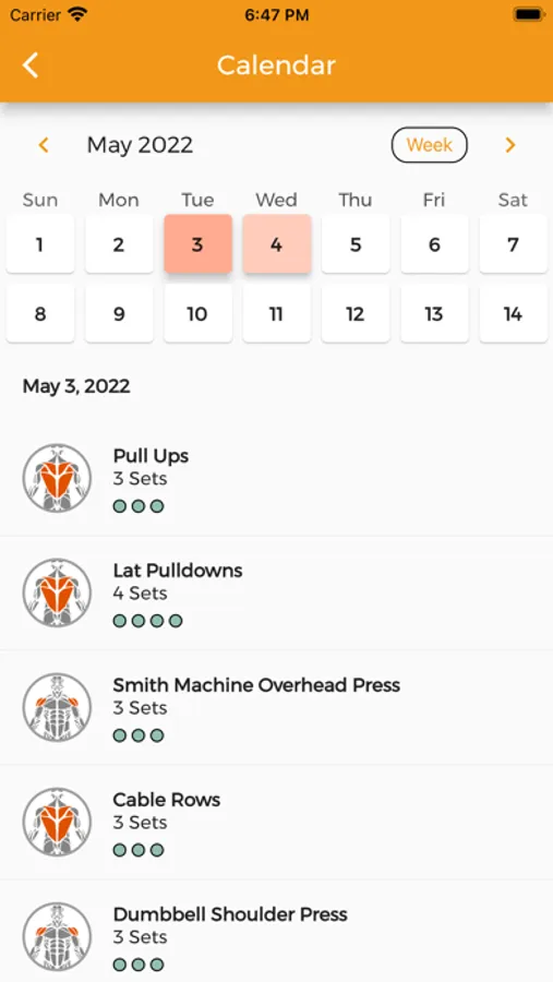 - View workout summaries and totals for each day using the draggable sheet on each page. Data includes total reps, total sets, total volume, and workout intensity