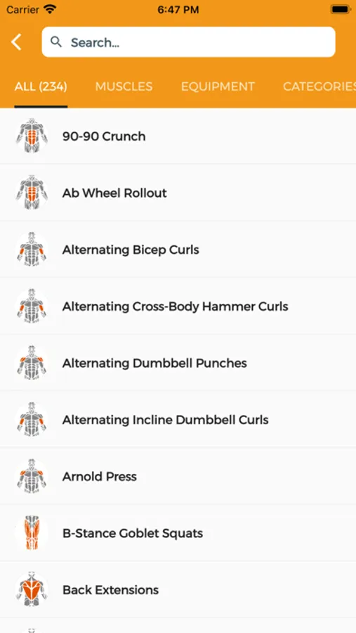 - Filter exercises based on their primary, secondary, and detailed target muscles