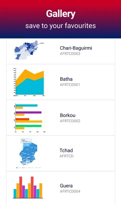 Chad data a été développé par l'Institut National de la Statistique, des Etudes Economiques et Démographiques (INSEED) Chad, pour le suivi des indicateurs socio-économiques. Cette application qui fonctionne également en mode hors ligne permet de générer des rapports sous forme de graphique, tableau et carte.