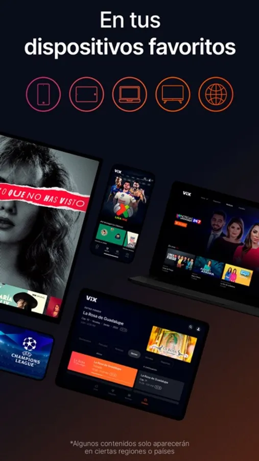 ¡Descarga ya! Abre la App y comienza a disfrutar totalmente GRATIS de nuestro servicio de streaming de manera inmediata en todos tus dispositivos favoritos. Tienes la opción de ver ViX en cualquier lugar y cuando quieras.