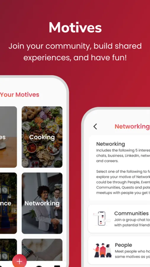 What do motives do? Motives are an easy way to get started instantly on Dyne and connect with communities of people just like you! When two people share the same motives, they can access motive-exclusive events, chats, and quests. All you have to do is enter your interests, and Dyne takes care of the rest!