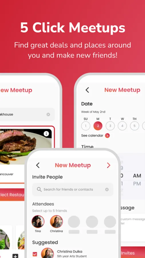 - Meetups: The best way to connect with someone over food in just 5 clicks with personalized restaurant recommendations, the best deals in the city, and automatic reservations!