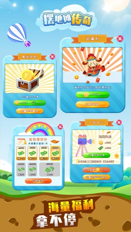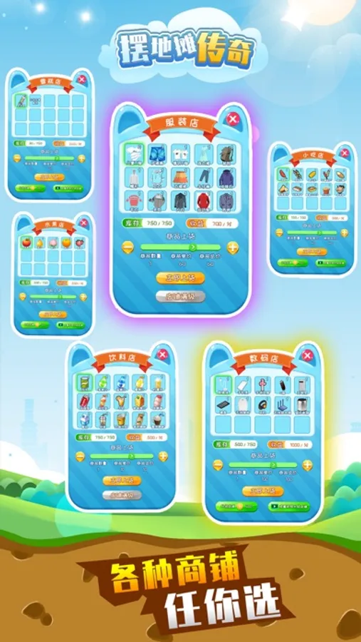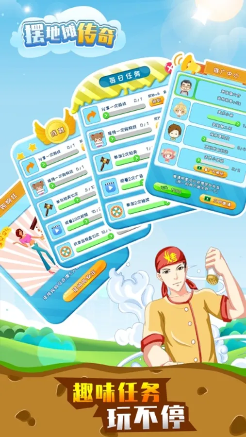 在公园中经营自己的地摊,白手起家一步一步变成商业大亨,水果摊、服装摊、饮料店、烧烤摊随意选择,通过低买高卖、升级店铺、招募明星扩大利润,实现暴富人生。