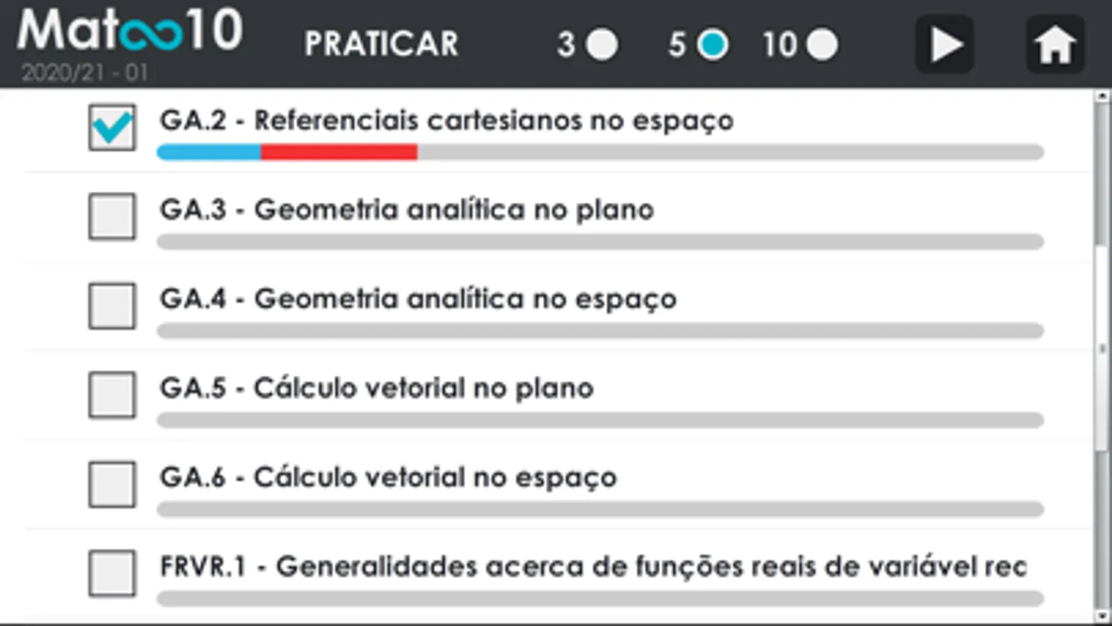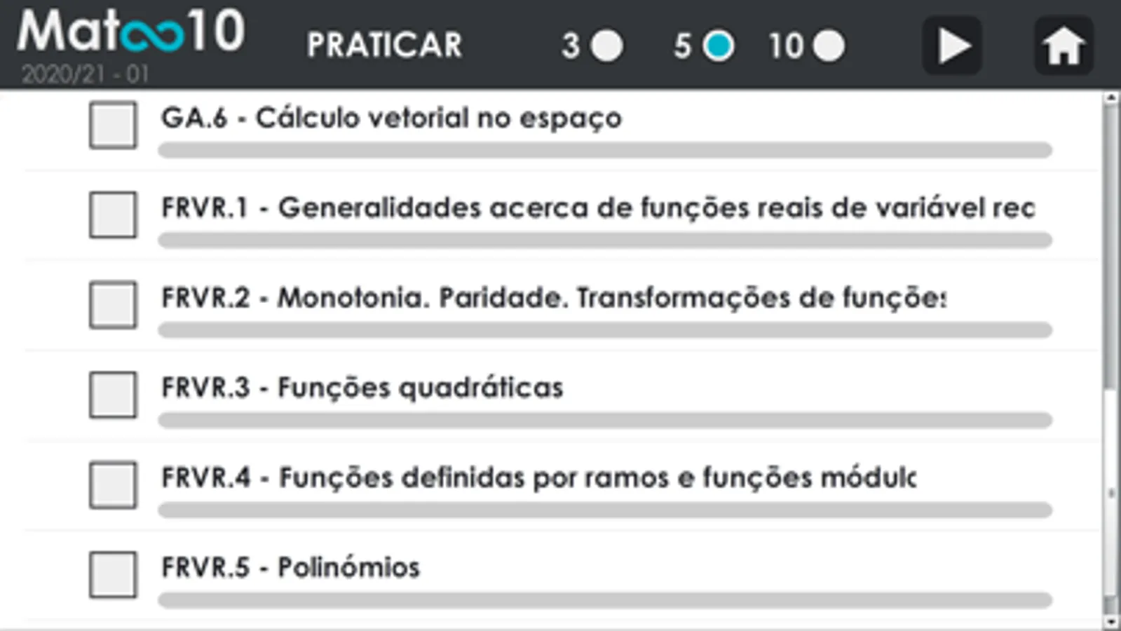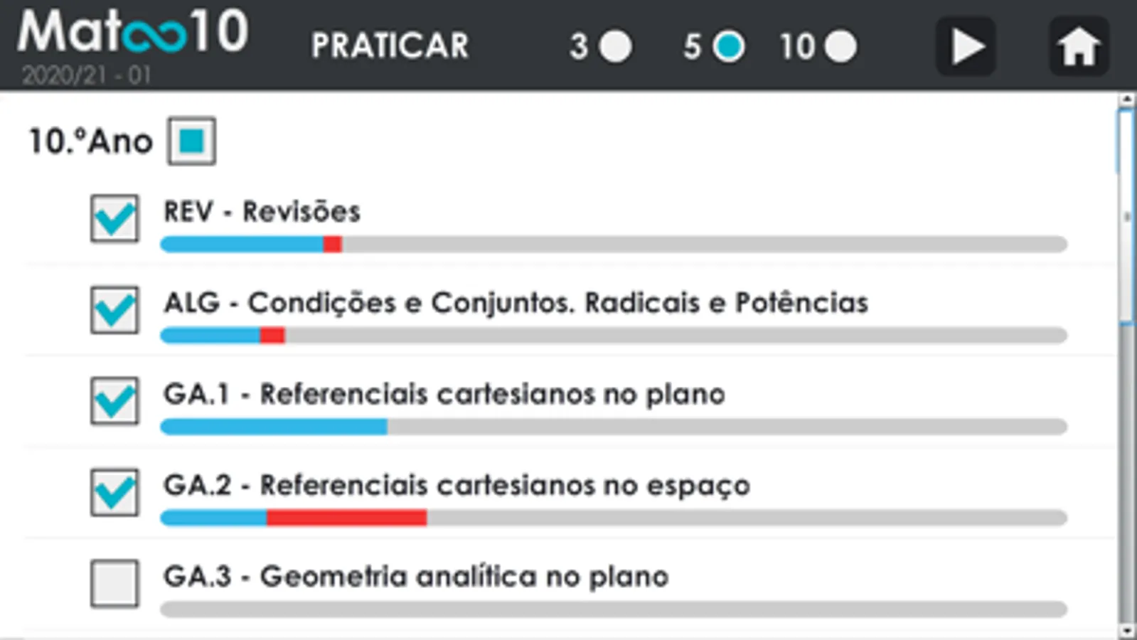 Na secção do PRATICAR, poderás treinar a resolução de mais de 500 exercícios de Matemática (estilo exame), organizados pelos seguintes temas: