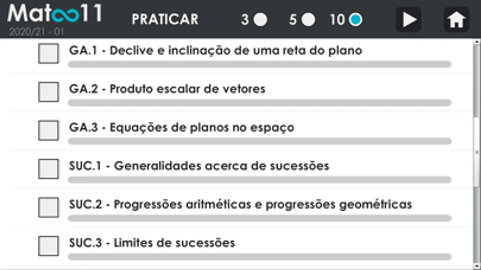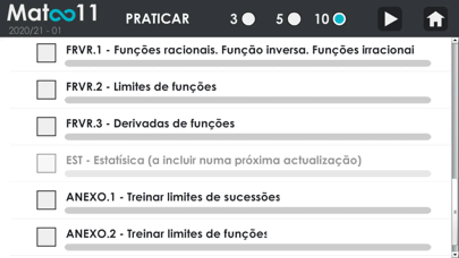 Na secção do PRATICAR, poderás treinar a resolução de mais de 500 exercícios de Matemática (estilo exame), organizados pelos seguintes temas: