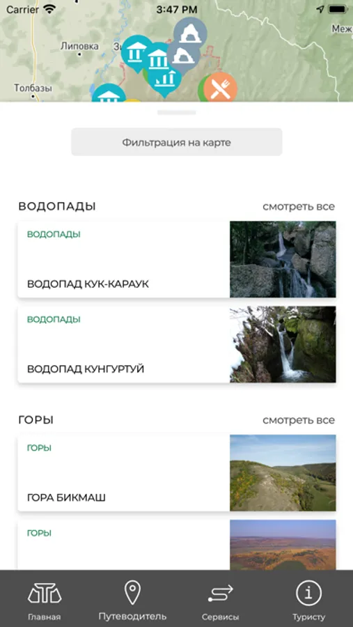 На карте обозначены все объекты геопарка, дополненные подробным описанием. Пользователи смогут скачать карту для использования при отсутствии связи.