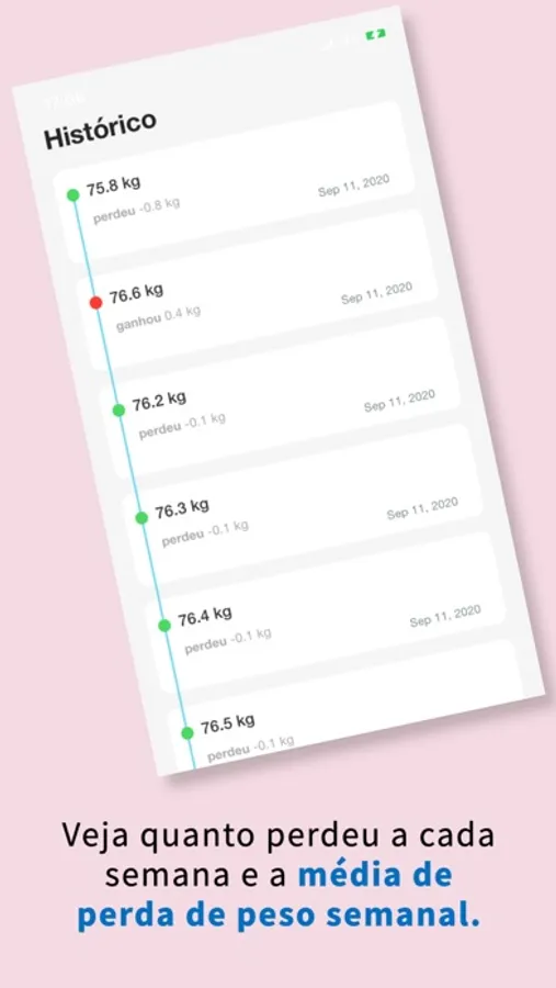 - Recebe alertas para pesar-se semanalmente, assim você mantem seu peso sob controle.