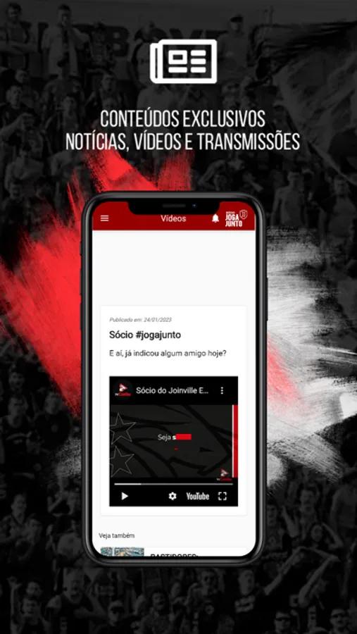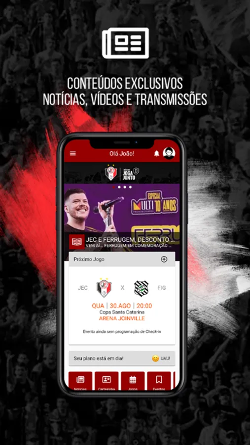 Só tem vantagens e incríveis experiências quem joga junto. Só quem é sócio-torcedor do JEC tem acesso aos conteúdos exclusivos do APP Oficial do programa! Confira: