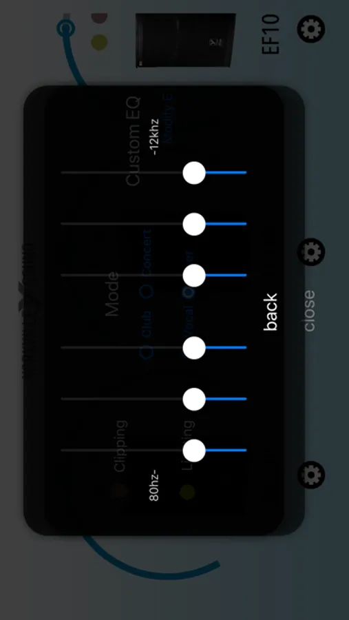 All of the controls on the back of your EF or ES unit are present, plus app-only control over the unit's equalizer (EF series only) and delay.