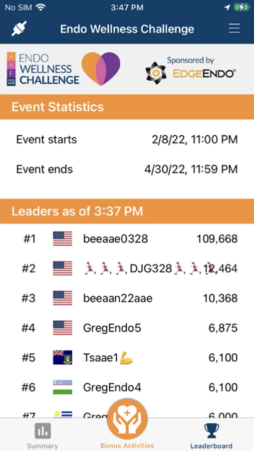 The Endo Wellness Challenge at AAE22 starts on Wednesday, April 27 at 12:01 a.m. MST and ends on Sunday, April 30 at 11:59 p.m. MST. Participants can track their steps using their own personal Fitbit, Apple Watch, Garmin, or the step trackers integrated on their iPhone via Apple Health.