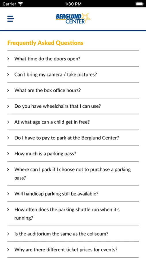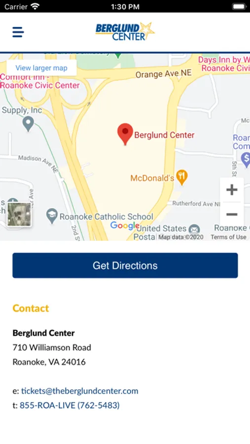 Berglund Center is home to premier concerts, sporting events, and much more! This is the one stop shop for the home of southwest Virginia's primary event arena that has hosted legends such as Elton John, Ringo Starr, and Luke Bryan. Download the app for exclusive opportunities on tickets, parking information, presales, upcoming events, and concession stand information! Have questions? Take advantage of our Frequently Asked Questions on the app to get the best response for your question. The new Berglund Center app provides the ultimate venue experience!