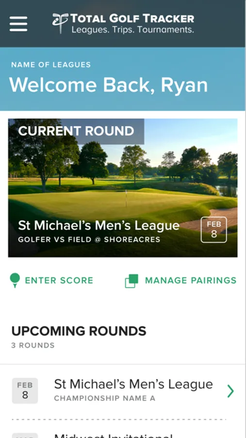 Configure Leagues and Trips: Total Golf Tracker lets you maintain your roster, handicapping rules, scoring formats and more for one or multiple iterations for your league or trip.
