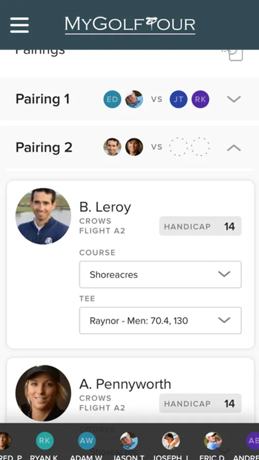 Play Golf: Setup your match ups and Pairings and we'll calculate the Handicaps and strokes given for you. Enter your scores and get the results for your competition immediately.