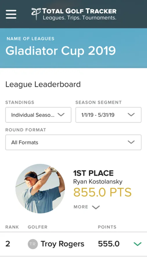 Approve Round Formats: Decide what scoring rules are allowed for your League, Trip or Event. If you play it on the course, Total Golf Tracker can record your results. Start with Stroke Play, Stableford, Match Play, and Skins to configure the rules used and the points earned. Use Differentials to Compete from Separate Courses