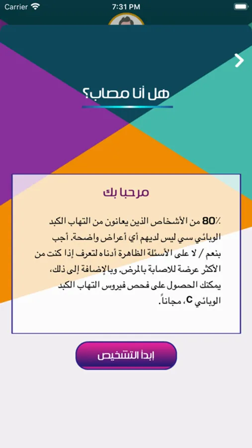 إن المعلومات الواردة في هذا التطبيق ليس مقصودا منها أن تكون بديلاً عن المشورة الطبية المهنية أو التشخيص أو العلاج، فكافة محتويات التطبيق، بما في ذلك النصوص والرسومات ومقاطع الفيديو والصور والمعلومات الواردة في هذا التطبيق أو المتاحة عبره، هي لأغراض الوعي الصحي والمعلومات العامة فقط.
