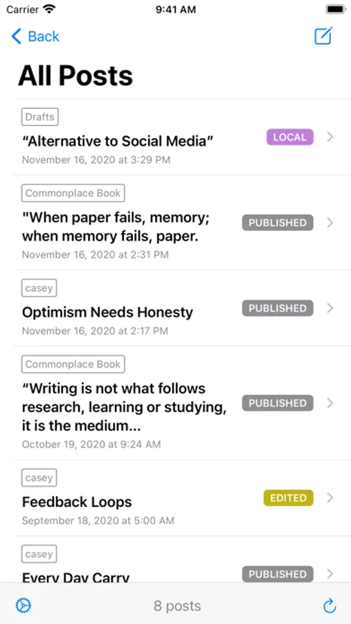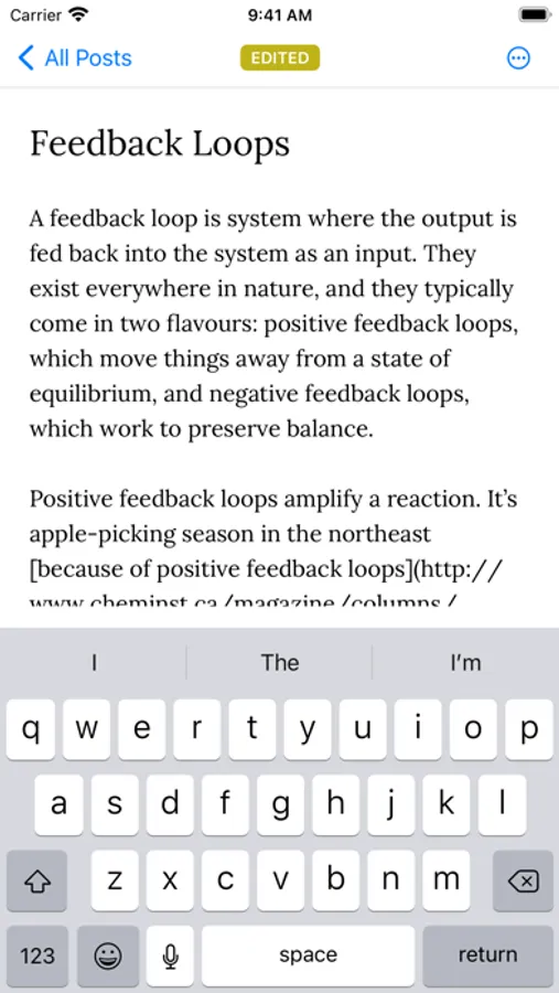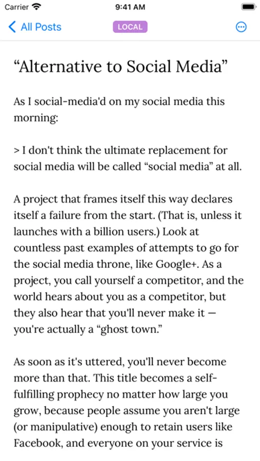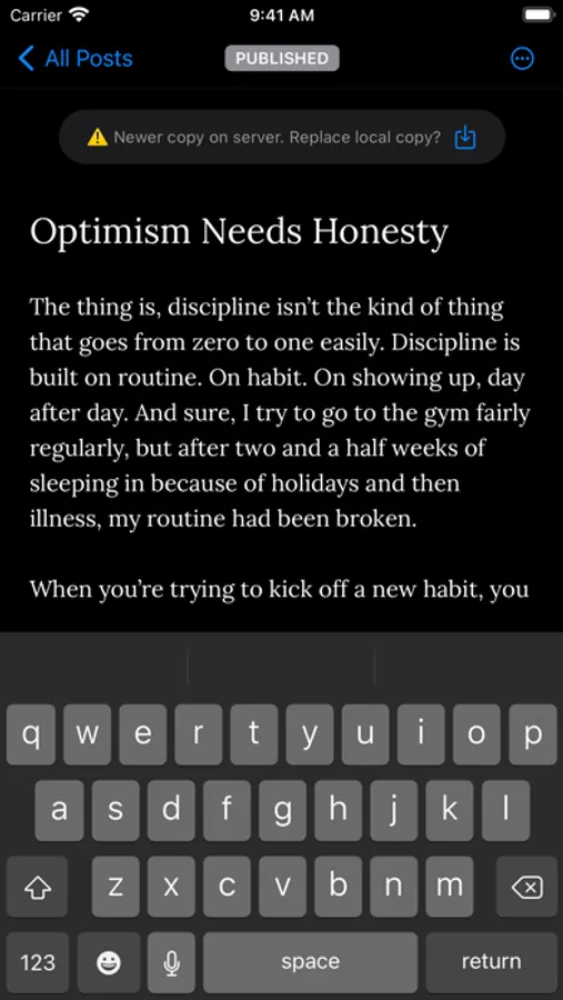 Draft and edit blog posts offline on your iPhone or iPad, and publish whenever you're ready. If you don't publish a post, it remains safe and private on your device.