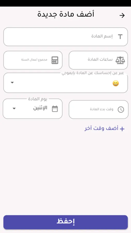 يمكنك إضافة موادك(بشكل يدوي) و تسجيل ساعات غيابك لمتابعتها أول لأول يمكنك أيضا استعراض جدولك اليومي