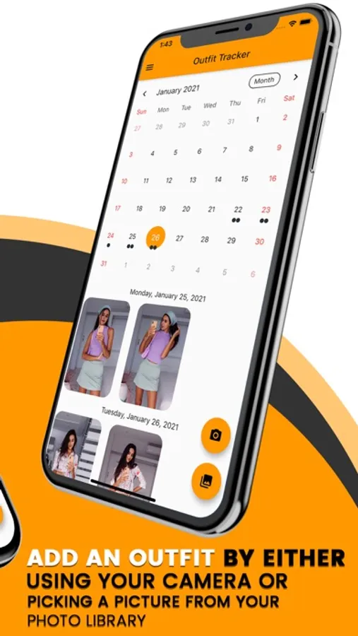 Add outfits directly from your photo library. Change date if needed to import old pictures.