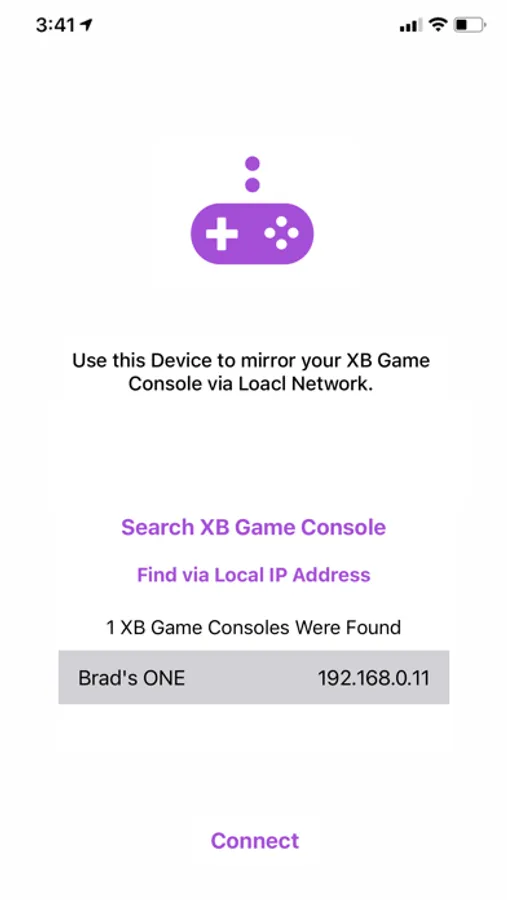 Use this app to connect your game console via Local Network.