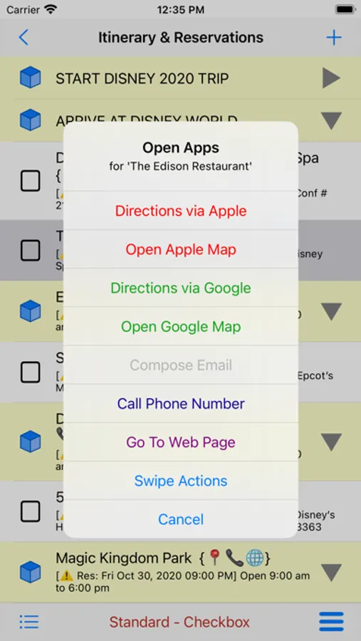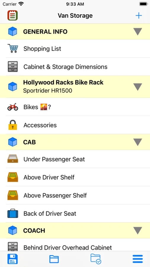 - Custom lists include: business listings, contacts, diary, itinerary, mileage, pack weight, shopping, expenditures, account, catalog, FAQ and data