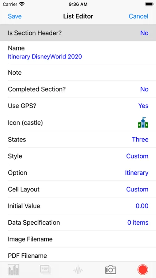 - A list editor allows the choice of different types of lists, a list icon, cell layout for presenting list items in tables, and the option of having a distinct ‘Completed’ items section