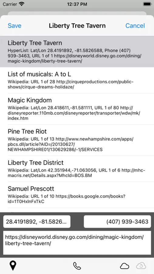 - Save and share individual lists or bundles of lists in HyperList format. You may have different lists or bundles on different devices, and can save them either on the device and/or in iCloud