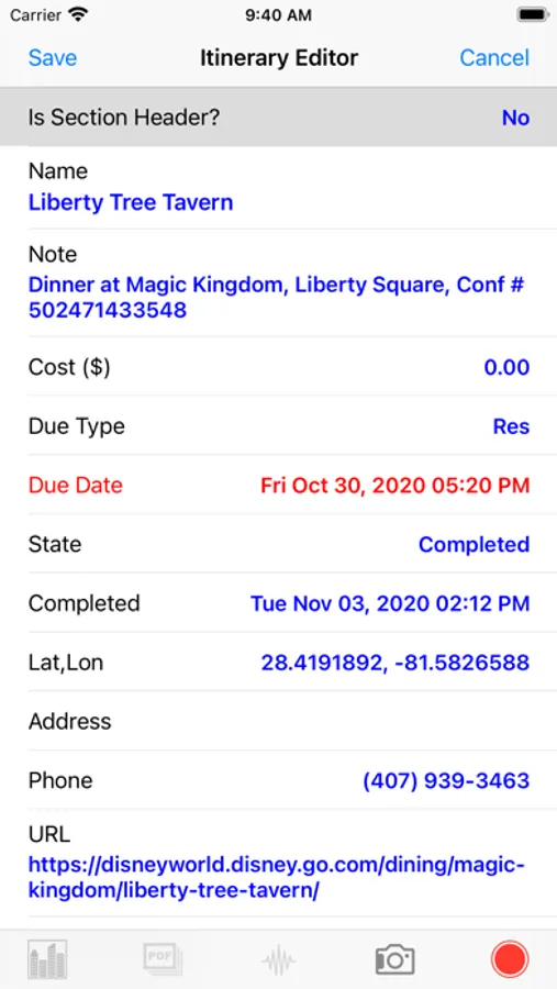 -- Dates/times can be specified and identified as due dates, reservations, appointments or just an ‘about’ date