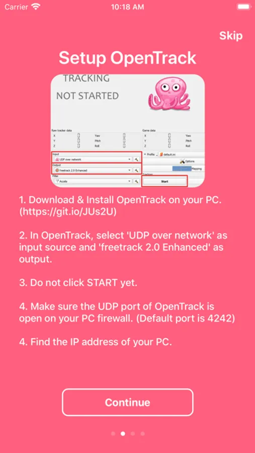 1. Download & Install OpenTrack on your PC. (https://git.io/JUs2U)