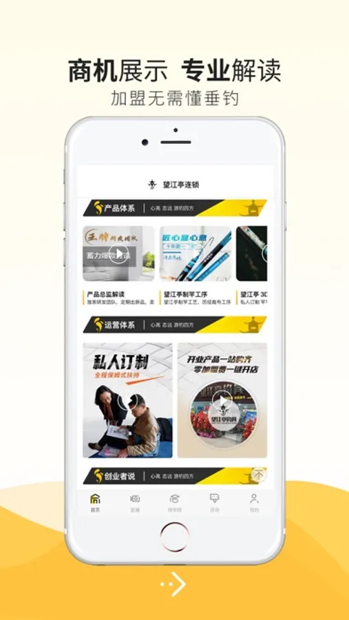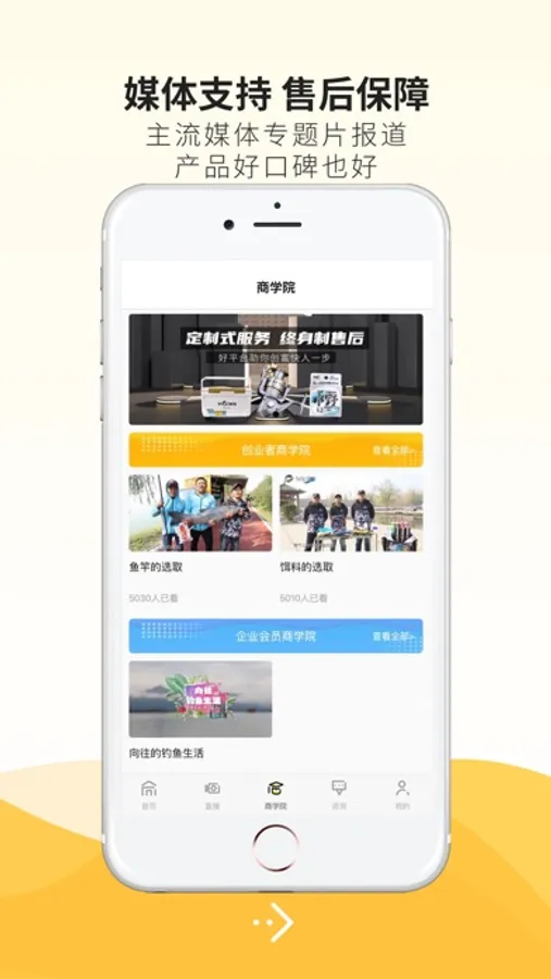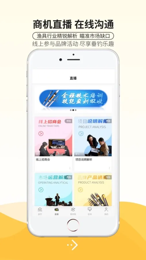 商机直播:通过当下流行的直播方式,让创业者足不出户也能参加线上招商会,更方便、更有针对性地了解项目的整体解析、市场运营战略、代理政策等内容。远程即可参加丰富的品牌活动,贴合垂钓爱好者需求。