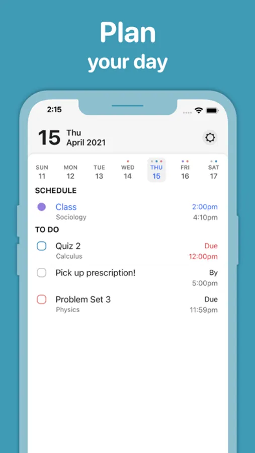 Don't miss class! Sail Planner enables you to keep track of your schedule, whether your school uses a period or weekday-based system. See class times alongside the rest of your day.
