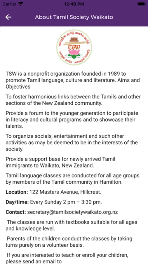 To foster harmonious links between the Tamils and other sections of the New Zealand community.