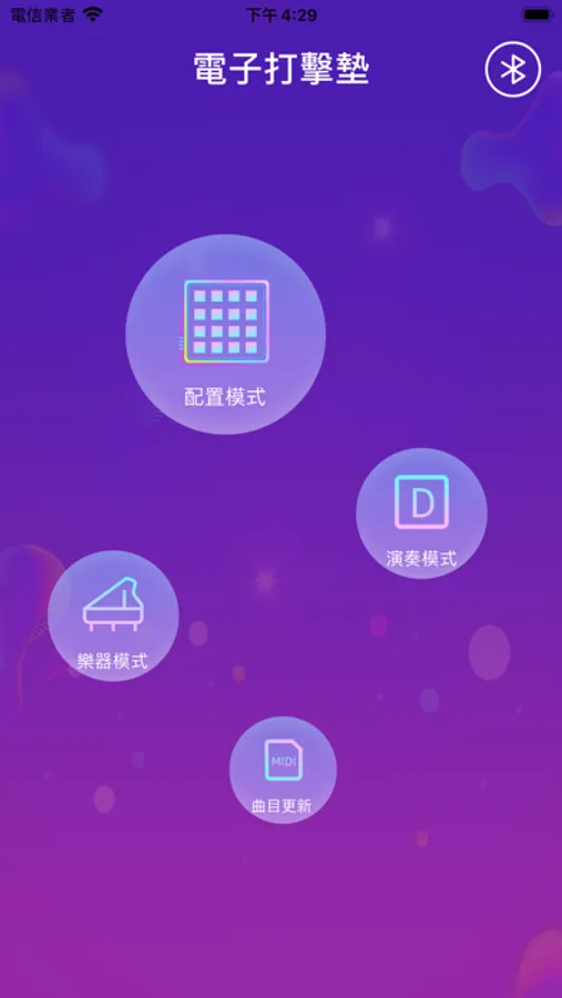 通過藍牙通信連接Holtek電子打擊墊實現如下功能: