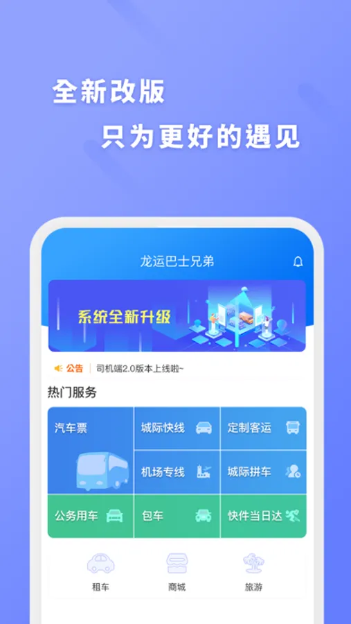 巴士兄弟是一个以公路客运为基础覆盖全省的互联网综合出行服务平台,提供汽车票、城际快线、机场专线、定制客运等出行服务和旅游、商城、快件当日达等附加服务,为旅客出行提供一站式服务,方便又贴心。