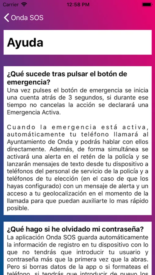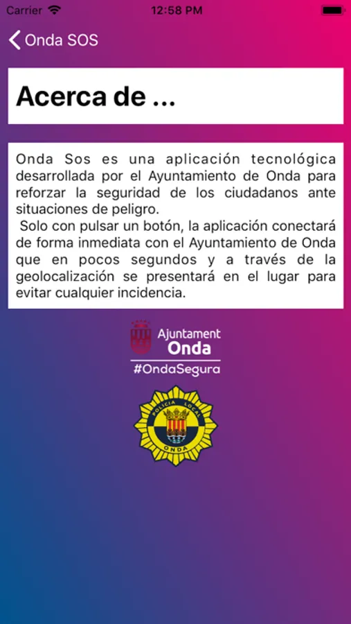 Tras registrarse en las instalaciones de la polcía local de Onda. Solo con pulsar un botón, la aplicación conectará de forma inmediata con la Policía Local que en pocos segundos y a través de la geolocalización se presentará en el lugar para evitar cualquier incidencia.