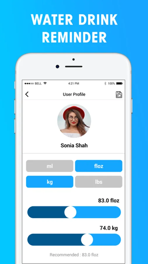 - Daily intake calculator, tracker and reminder based on your sex, weight and activity level.