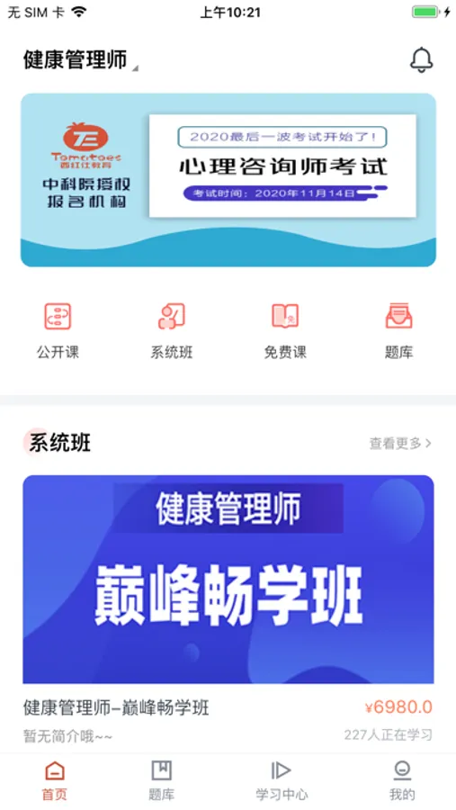 集直播授课,视频授课,咨询发布为一体的职业培训平台,涉及心理咨询师,健康管理师,一级消防工程师,人力资源资格证等众多科目。