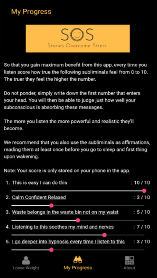 At the end of our therapy you will be able to score yourself against how well did your subconscious registered hidden messages (subliminals).