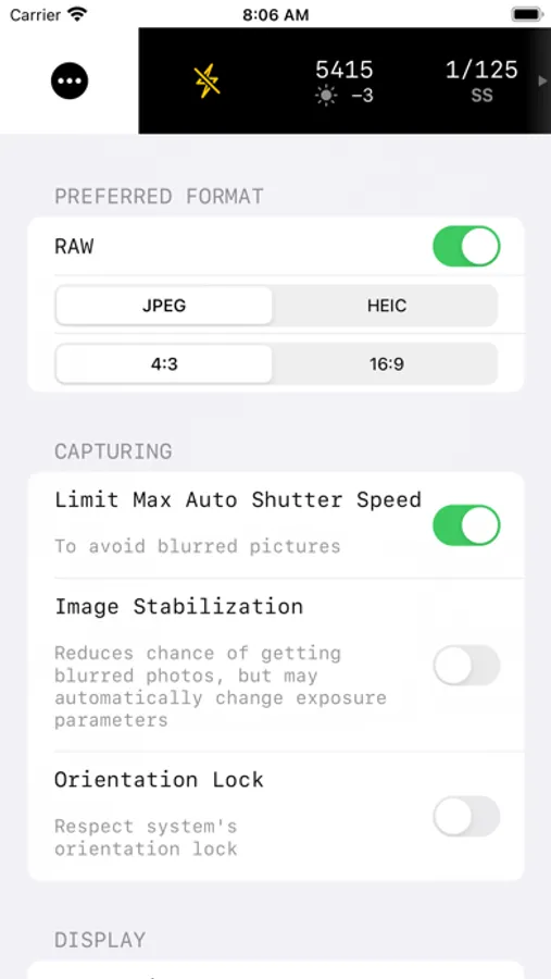 * RAW (DNG) + JPEG/HEIC photo capturing