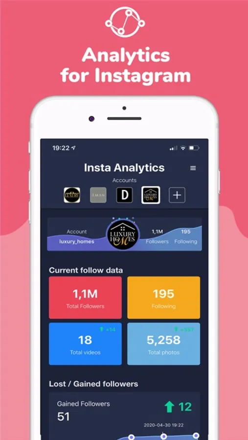 Easy to use analytics app specialized for Instagram. It can help you track your profile stats and provides valuable insights into your audience. By leveraging this data you can improve the timing and contents of your posts, and track what engages your friends and audience most.