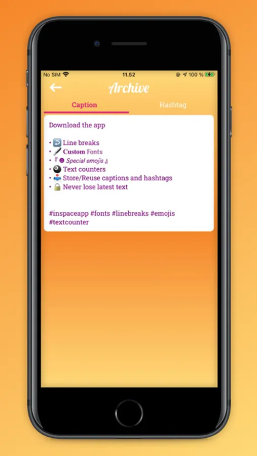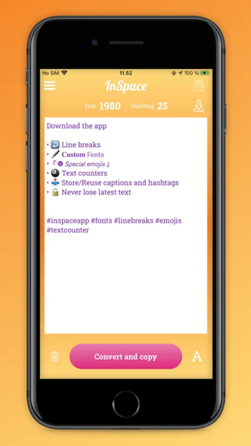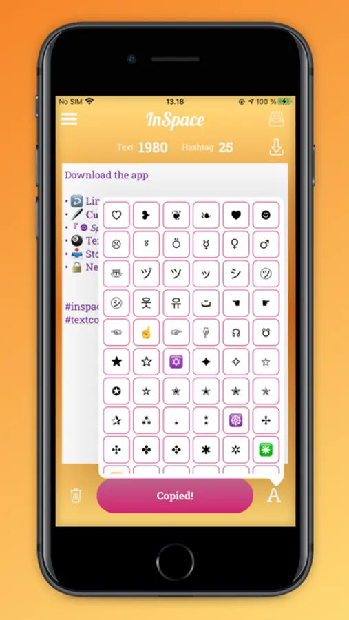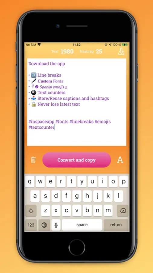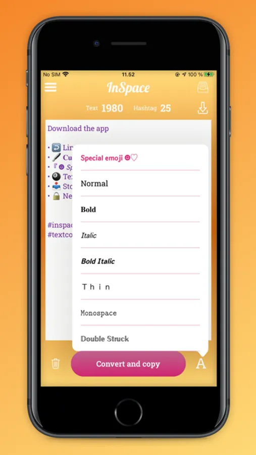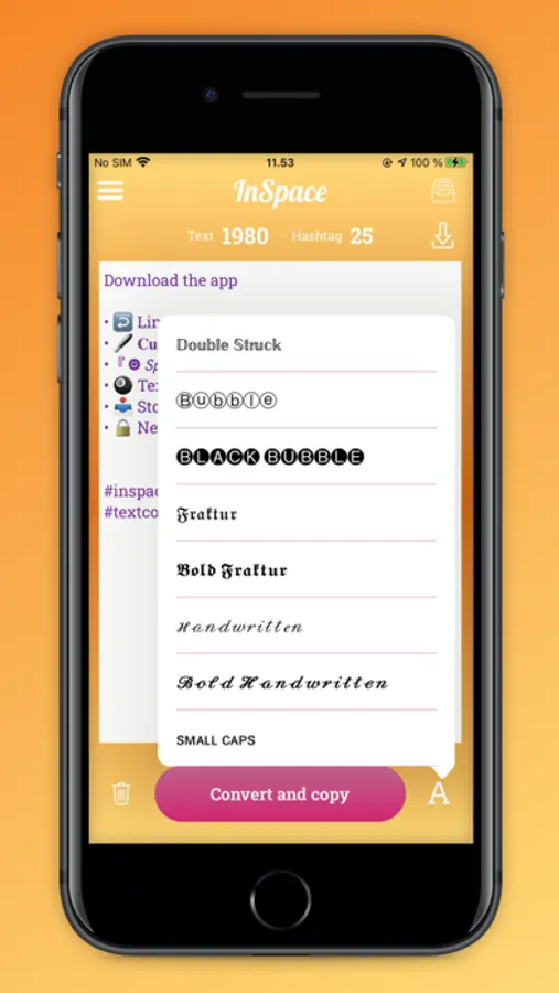 The text with custom fonts and emojis can be shared in every app and social network as well!