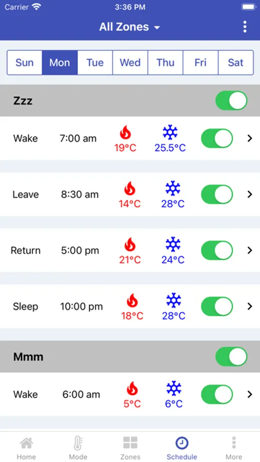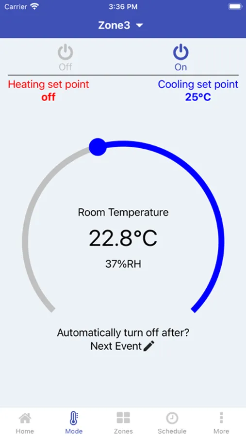 If your home or office has zoning enabled, using the Inspire Touch App you are able to control each zones temperature and pre-set schedules just as if you were in front of the wall controller from anywhere where you have internet access.