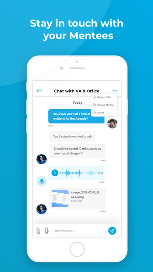 The chat function will allow you to communicate with all stakeholders within your team, mentors and mentees alike. The key functionalities which we have integrated into this platform are described below: