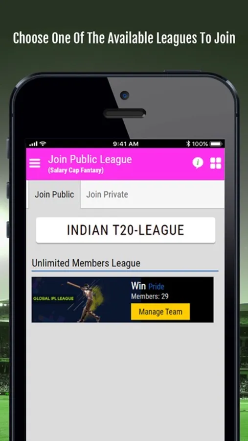 Step 2: Join public leagues or create your own private league and invite your friends.