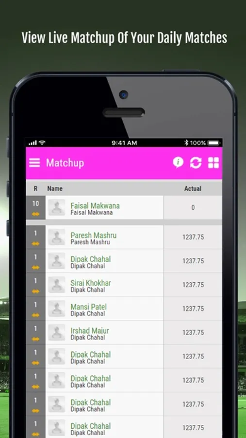 Watch your fantasy team score points every minute! Keep track of your team’s performance as per the LIVE MATCH and cheer them as they score points for your fantasy team! Keep track of your team scores that are updated real-time (every 30 seconds) every match.