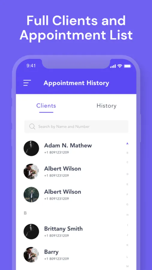 View all your clients and their past orders. Search for clients by name or find them by their previous bookings.