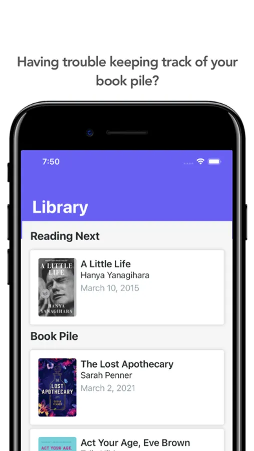 Book pile is here to solve those problems. Easily find and track books from the authors you love, and never miss a release date again! Having trouble keeping track of how many books you've read this year? We'll keep track of it for you! Have any books that you've been meaning to read, but that book pile just keeps getting longer, and longer, and now you've forgotten which ones you planned to read next? We've got that covered too.