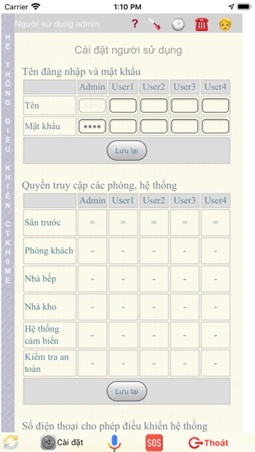 + Chức năng chống trộm cao cấp thể hiện qua báo động có trộm bị động, báo trộm chủ động, gọi điện báo động qua SIM điện thoại, nhắn tin báo động qua SIM, đồng thời nhắn tin qua ứng dụng CTkhome Deluxe, lưu lại ngày giờ báo tin, vị trí người chủ động báo có trộm. Ngoài ra hệ thống có chức năng báo động khẩn cấp SOS, khi thanh2 viên nào trong gia đình bị sự cố chỉ cần nhấn nút SOS trên phần mềm Ctkhome Deluxe thì tất cả các thành viên khác trong gia đình sẽ nhận được tin nhắn, kèm theo vị trí bị sự cố trên phần mềm CTkhome Deluxe. Ngoài ra còn nhiều chức năng cao cấp khác như điều khiển tất cả thiết bị điện, điện tử trong nhà qua giọng nói Việt tích hợp ngay trên phần mềm CTkhome Deluxe